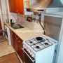 A konyhában a beépített bútorokon kívül van mosógép, hűtőszekrény, tűzhely sütővel.