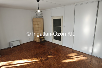 A szoba tágas, kb 28m2-es, melyhez tartózik egy kb. 5m2-es erkély is. A képeken látható cserépkályha nem működik, helyette új villany radiátorok biztosítják a fűtést.