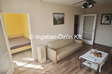 Az ablakok déli tájolásúak A nappali 17.5 nm-es laminált burkolatú. A félszoba 6 nm-es és két ajtaja is van, így a lakás körbejárható.