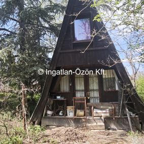 3. kerületben, Csúcshegyen, az Aranypatak utcában, 1462 m2-es, 20 m szélességű telek, 15 m2-es "alpesi" fa épülettel, eladó.