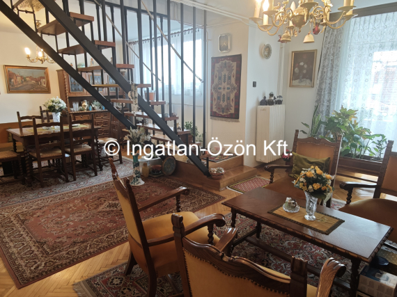 Ahol a lakás található ezt a szintet 1984-ben építették rá az eredeti épületre. A lakás alsó szintjén található egy előszoba (4m2), konyha (11m2), fürdőszoba (3m2), Wc, valamint a tágas nappali + étkező és egy kis télikert is, ami közel 40 m2 összterületű. A nappaliból vezet fel egy lépcső az emeleti részbe. Itt ki lett alakítva két hálószoba (12m2 és 17 m2) valamint egy fürdőszoba wc-vel (4m2) és egy gardrób helyiség (8 m2) is.
